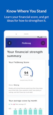 - Track your overall financial health and strength with a “FinStrong” score, and