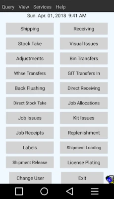 Modules included are Shipping (everything from order picking to palleted and boxed shipments), receiving, stock take, inventory adjustments, bin transfers, warehouse transfers, back flushing, Job allocations, issues, kit issues and receipts, sales order allocations and more.