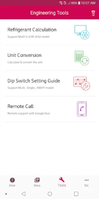 The Services allows you to find and download the services & technical contents of system air-conditioner through your mobile device and use additional functions such as error code & troubleshooting guide, manual guide, refrigerant simulation, unit conversion, and remote call services.