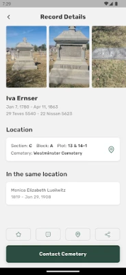 Westminster Cemetery App allows users to search a definitive collection of burial records and get basic information about relatives interred here. After registration, you can contact the cemetery, add records to favorites and order grave care services.